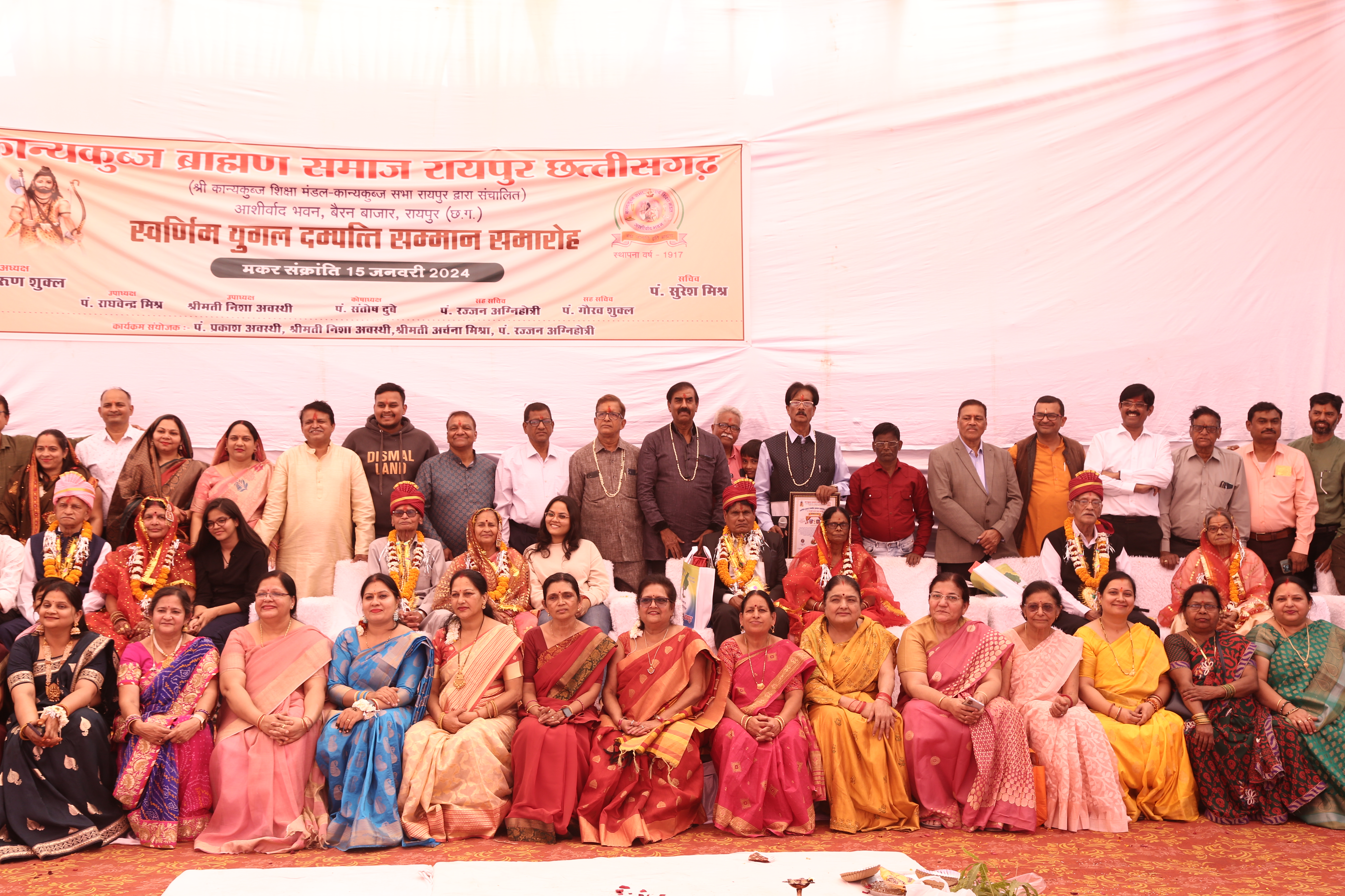 कान्यकुब्ज ब्राह्मण समाज की एकता, अखण्डता एवं निरंतर प्रगति के प्रति समर्पित भावना से किये जा रहे कार्यों का साक्षी आज का आशीर्वाद भवन एवं आशीर्वाद हायर सेकेण्डरी इग्लिश मीडियम स्कूल उन प्रारंभिक दिनों की याद समेटे हुए है जब सुविचारों को मूर्तरूप देते हुए पितृ-पुरूष पं. रविशंकर शुक्ल जी ने अपने अथक प्रयास से सन् 1917 में शहर के मध्य एक विशाल भूखण्ड समाज को उपलब्ध कराया। सदस्यों के क्रियाकलापों की जानकारी एवं विचारों के आदान-प्रदान के लिये एक छत के नीचे निरंतर बैठकों के माध्यम से सम्पर्क में रहना आवश्यक होता है। इसी आवश्यकता को देखते हुए शहर के उभरते शैक्षणिक क्षेत्र के इस भू-भाग में प्राप्त भूखण्ड में सर्वप्रथम प रविशंकर शुक्ल जी ने एक छात्रावास का निर्माण करवाया, इस कार्य में तत्कालीन सचिव रहे प. रेवा प्रसाद दुबे जी व समस्त सदस्यों ने भी पूर्ण सहयोग प्रदान किया। यहाँ बैठके भी होती रही व छात्रावास भी संचालित होते रहा इस संबंध में श्री मावली प्रसाद श्रीवास्तव ने अपनी पुस्तक छत्तीसगढका इतिहास (संस्करण 1933) में लिखा है कान्यकुब्ज-कुलभूषण पं. रविशंकर शुक्ल ने कान्यकुब्ज के लिये एक विशाल बोर्डिंग हाउस तैयार करा दिया है जिसकी लागत शायद पन्द्रह-बीस हजार रूपये हो। जातीय उन्नति के लिये कुछ समय तक कान्यकुब्ज नायक नामक मासिक पत्र रायपुर से निकाला जाता था।